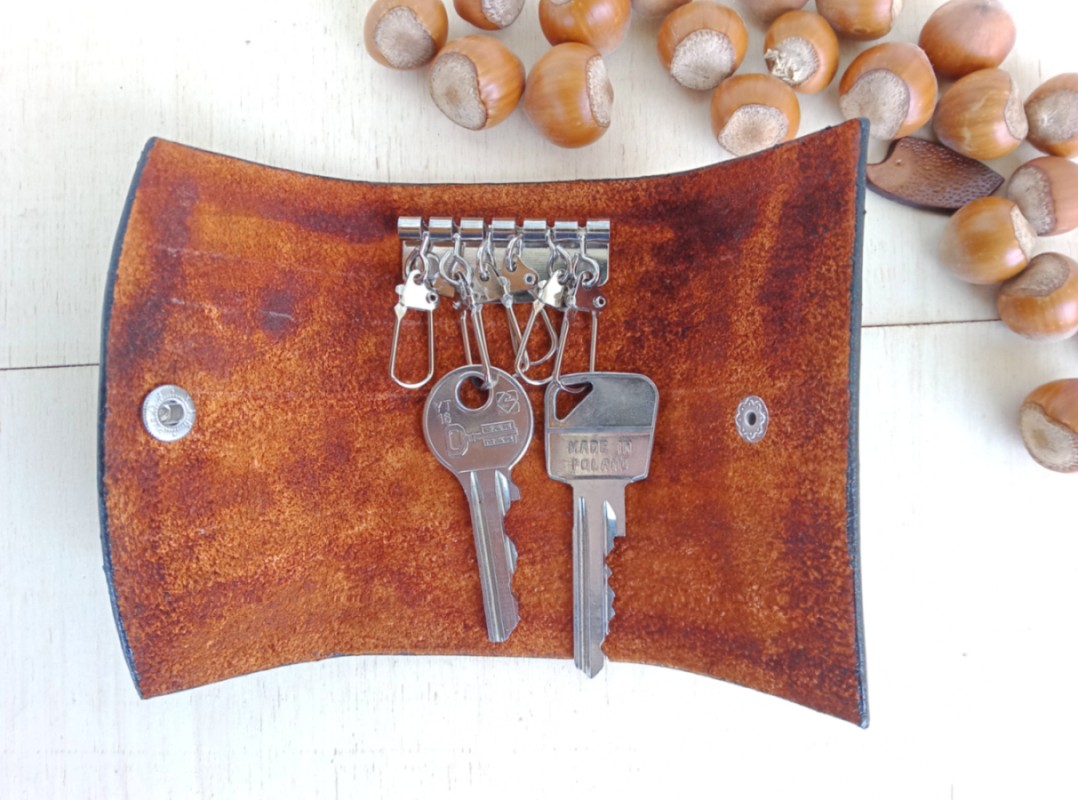 Etui na klucze ze skóry naturalnej ręcznie robione. Smocze skrzydło.